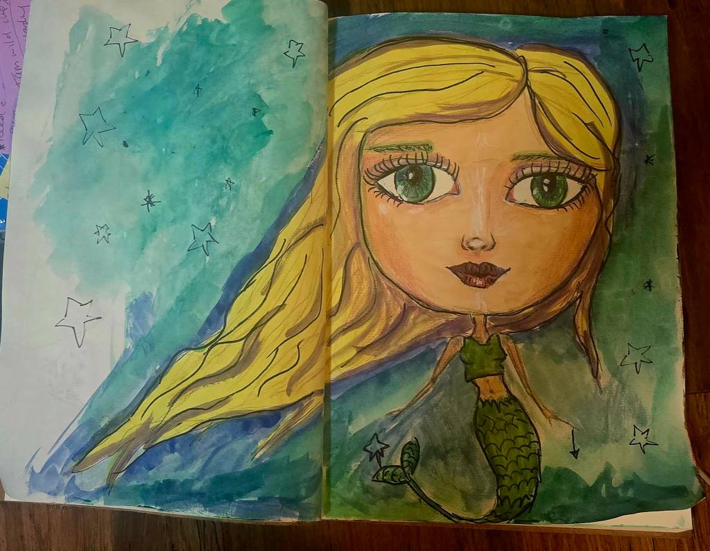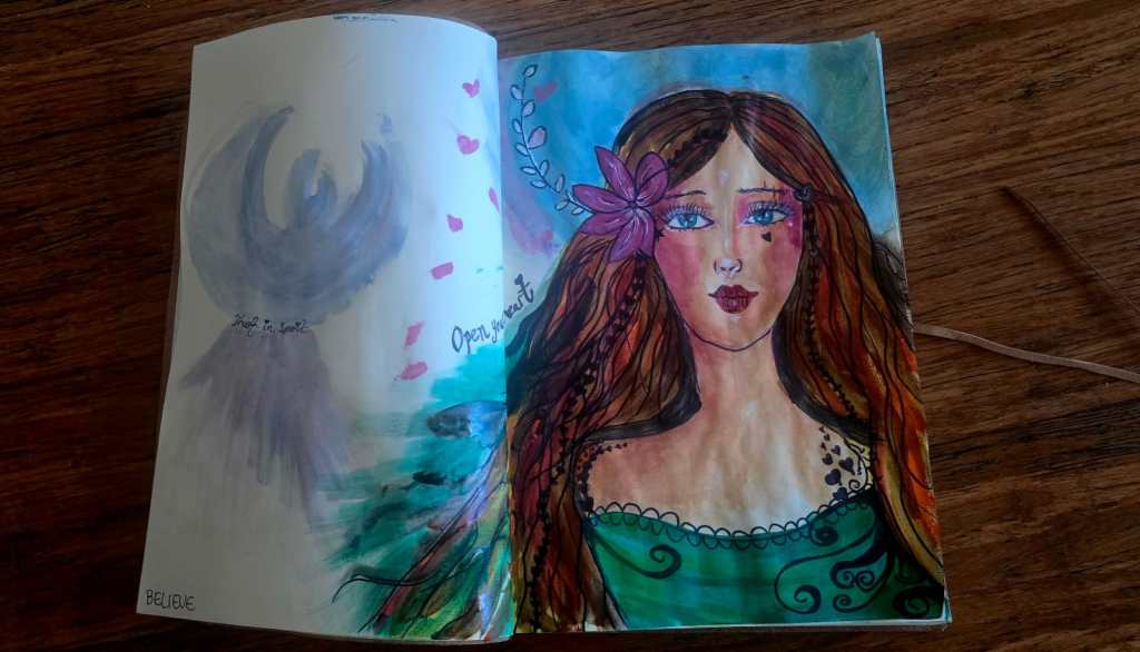 I’ve taken a bit of a pause so far myself (yes it’s true!) and I look forward to more time off. I have spent so far doing something I haven’t done in a long time – and that is painting! It’s been so lovely to reconnect to some creativity again and play – in a different way. Here’s a beautiful girl that’s come onto my page inviting me to trust the process and believe again. To open my heart – even more.